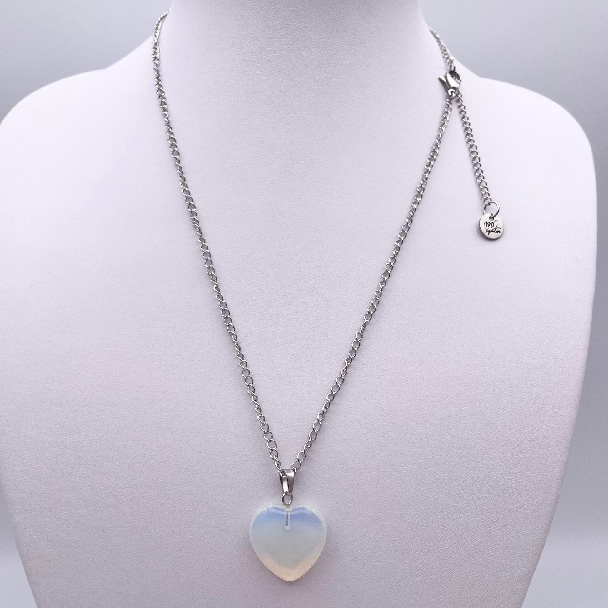 La pierre mise en valeur sur ce collier est de l'opalite.